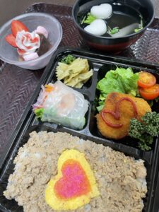 写真↓は5日のお夕食です。今回はお弁当形式で提供させていただきました。