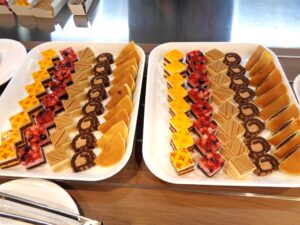 ケーキバイキングでは、お皿いっぱいに好みのスイーツを並べながら